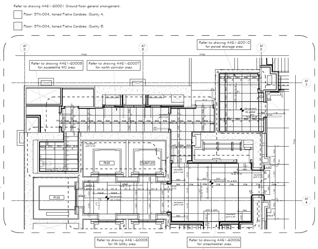 Design and installation of natural stone flooring & cladding used in a high quality residential building.